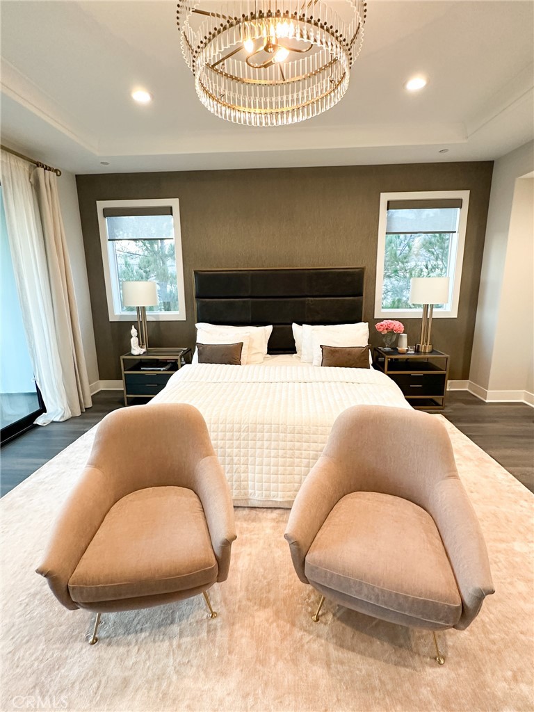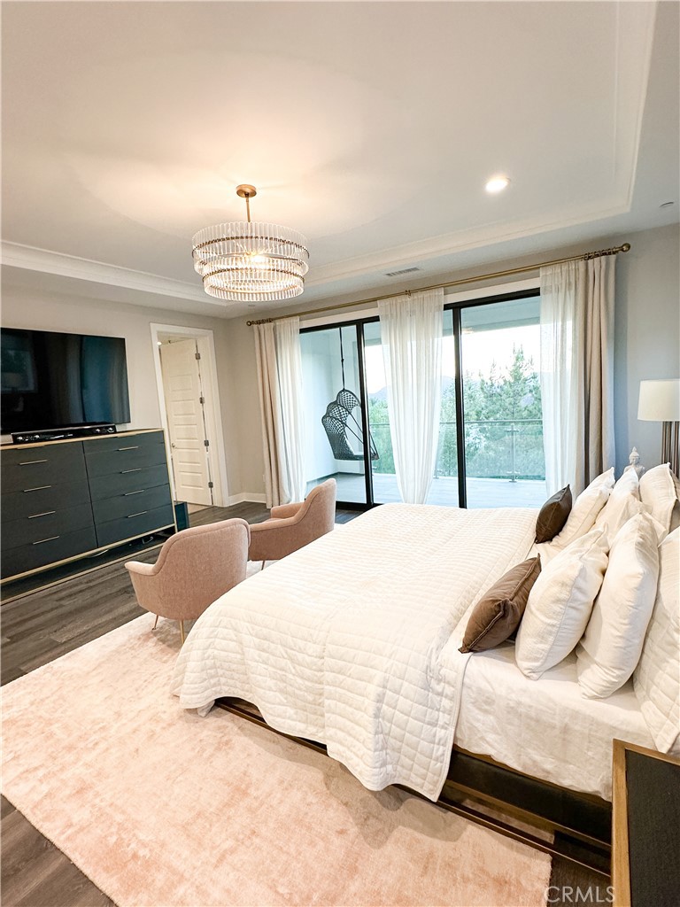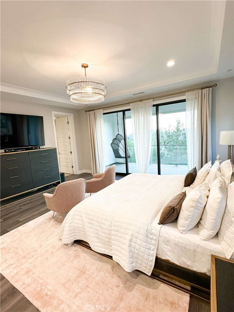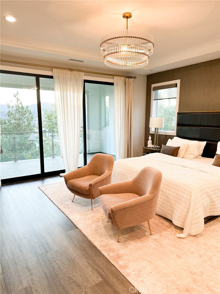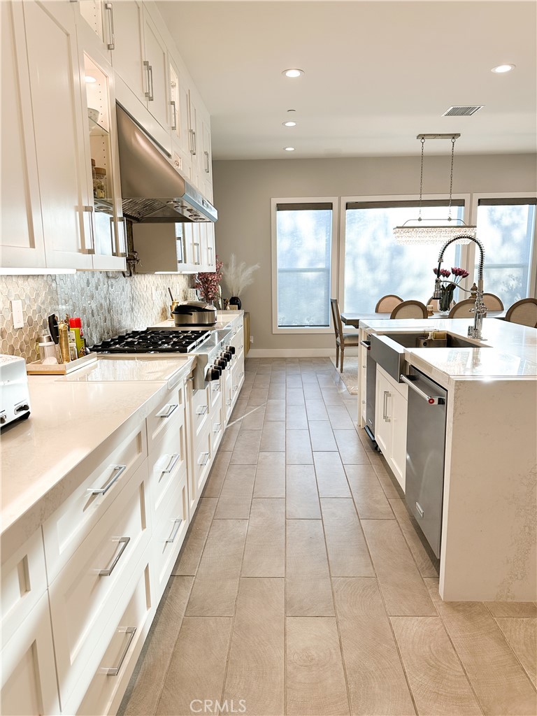 Just like the MODEL HOME everyone falls in love with, this CORNER LOT home with breathtaking VIEWS in the highly sought-after GATED Avila at Porter Ranch community. Conveniently located across from the exclusive Clubhouse with RESORT-STYLE POOL & amenities, this Modern home showcases luxury upgrades throughout. Designed to blend modern luxury and comfort, this home features 5 bedrooms and 5 bathrooms, along with a GOURMET KITCHEN that showcases Calacatta quartz waterfall and an extended island. The kitchen is equipped with built-in JENN-AIR Pro appliances, custom high-ceiling upgraded craftsman cabinetry, and an expansive, captivating kitchen and dining backsplash.