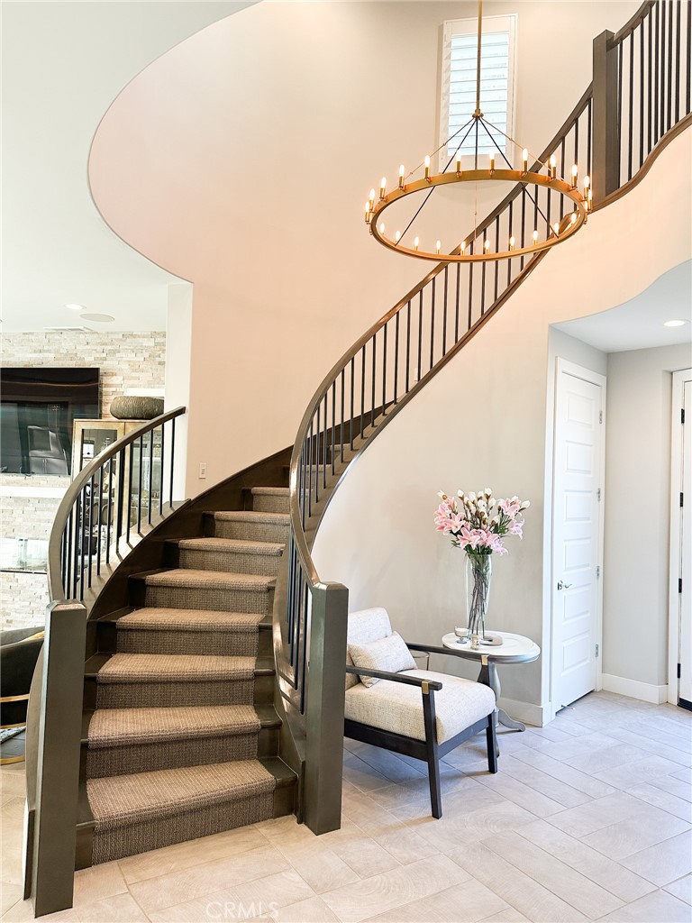 This tech-savvy home features full automation with CONTROL4 Smart System, upgraded app-controlled lighting and temperature control, an upgraded home theater speaker and woofer system with simultaneous loop play in the great room, kitchen, patio, main bedroom, and loft, indoor and outdoor security cameras, and a centralized in-built vacuum system. Additional highlights include ELEGANT custom flooring and carpeting, an upgraded spiral staircase, SOLAR panels, and epoxy garage floors with an EV charging station.