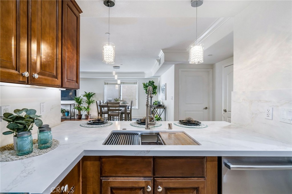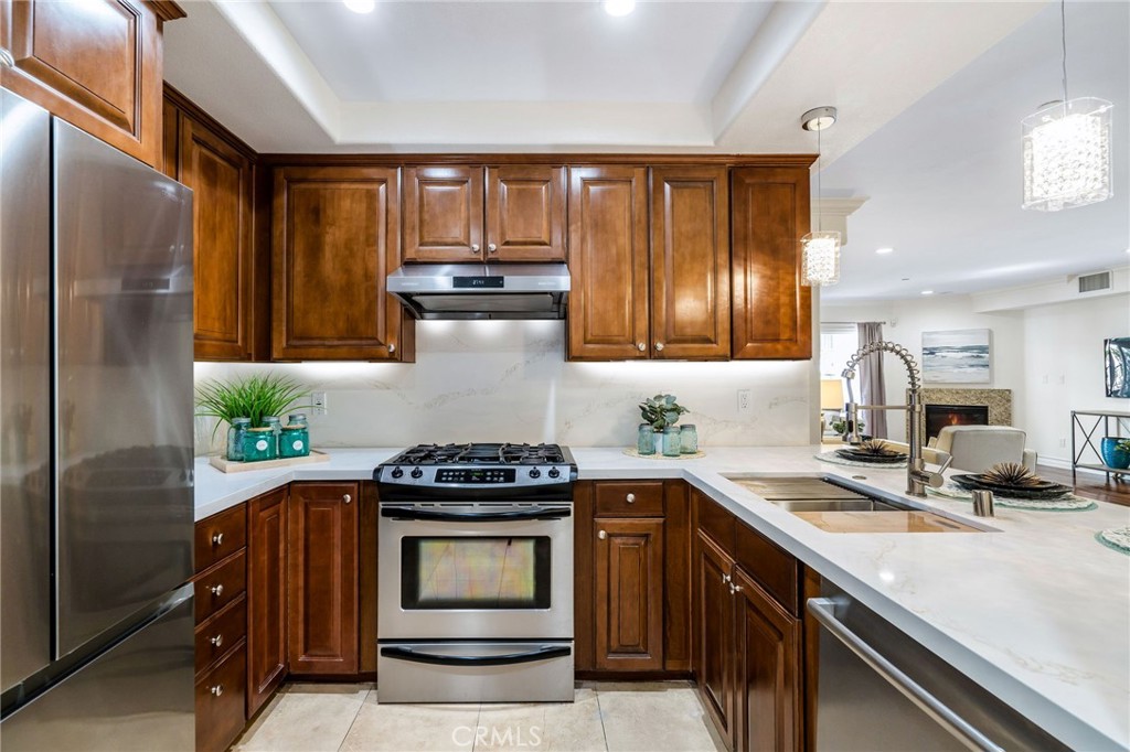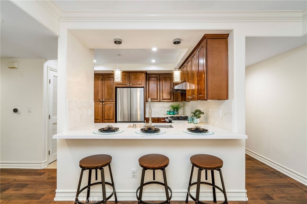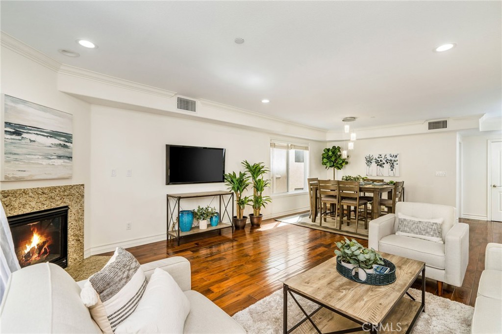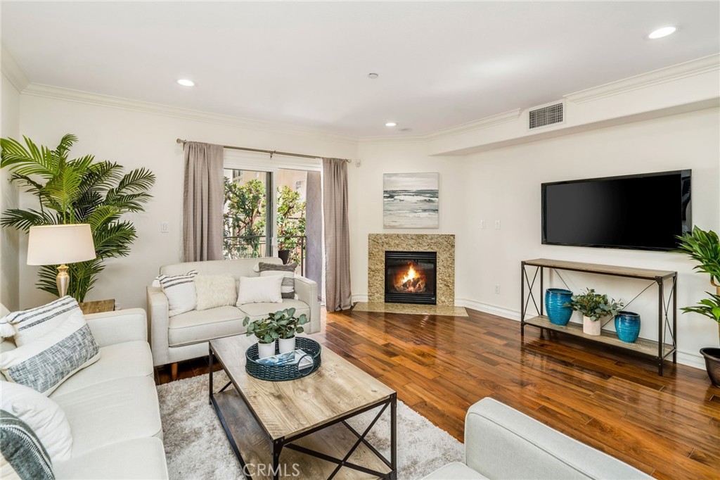 Built in 2006, this spacious, meticulously-designed 3 bedroom, 3.5bath condo on a quiet, tree-lined street in prime Westwood invites you to a refined, elevated living experience. This home boasts a coveted floor plan with three bedrooms, each featuring its own private en-suite bathroom plus an additional powder room for guests. An updated chef's kitchen adorns with solid wood cabinets, stainless steel appliances and extended quartz countertop bar, creating an ideal space for cooking and entertaining. The formal dining area transitions into the spacious living room with a cozy fireplace, leading to a private balcony that serves as a serene oasis for morning coffees or unset soirees. The lavishly spacious master bedroom comes with a private covered balcony, a seating/lounge area, a custom walk-in closet, and a master bath featuring a soaking tub and a walk-in shower. The second guest suite, nestled next to the master, is perfect for a children's room or a study, while the third guest suite, located on the opposite side of the living room offers extra privacy. The unit comes with AC, crown molding throughout, beautiful engineered wood flooring, recess lighting with designer fixtures, along with side by side washer and dryer. This highly-desired smaller 15-unit gated building ensures security with controlled access, a comprehensive security system, and a lower-level, closed-in common outdoor area for residents. Two designated parking spaces in the garage, complemented by 7 guest parking spaces for visitors. Two separate storages rooms- one for larger items such as bikes and a private storage space, designated for this unit. Nestled in the award-winning Westwood Charter elementary school district, this home is minutes away from cafes, shops and restaurants, world-class Century City shopping & entertainment, UCLA, Google office campus and convenient freeway access, offering a lifestyle of luxury and convenience.
