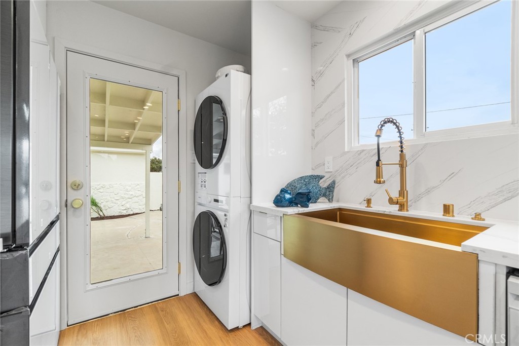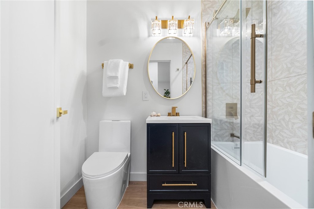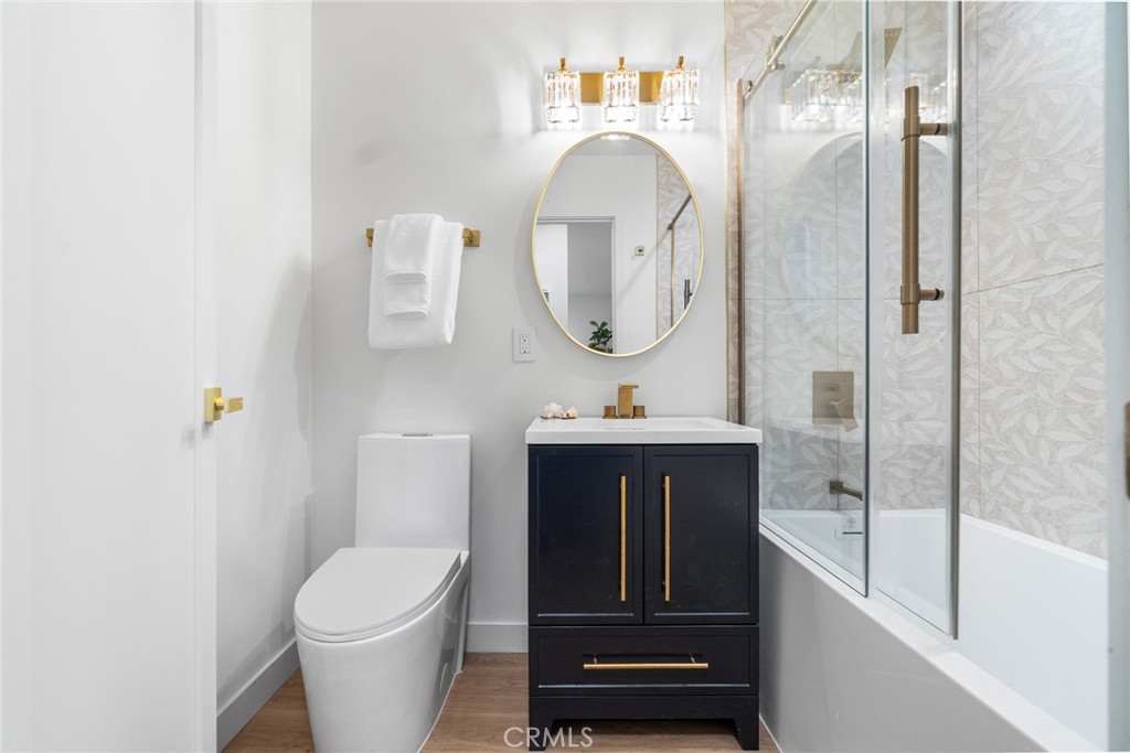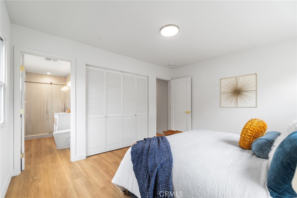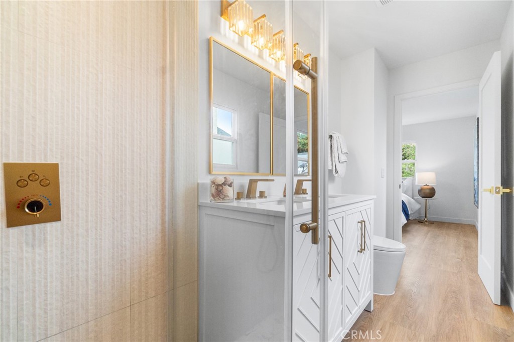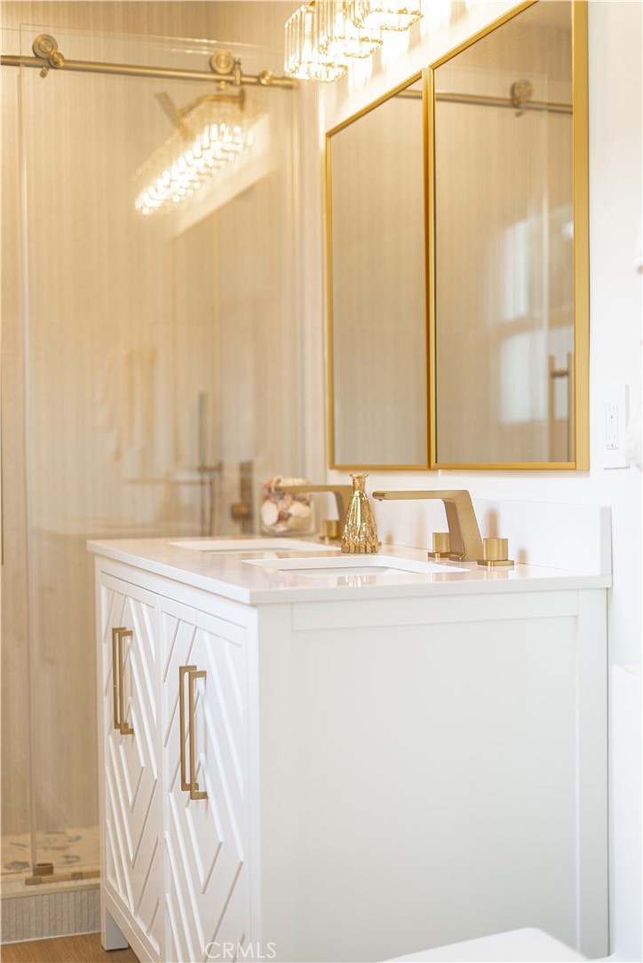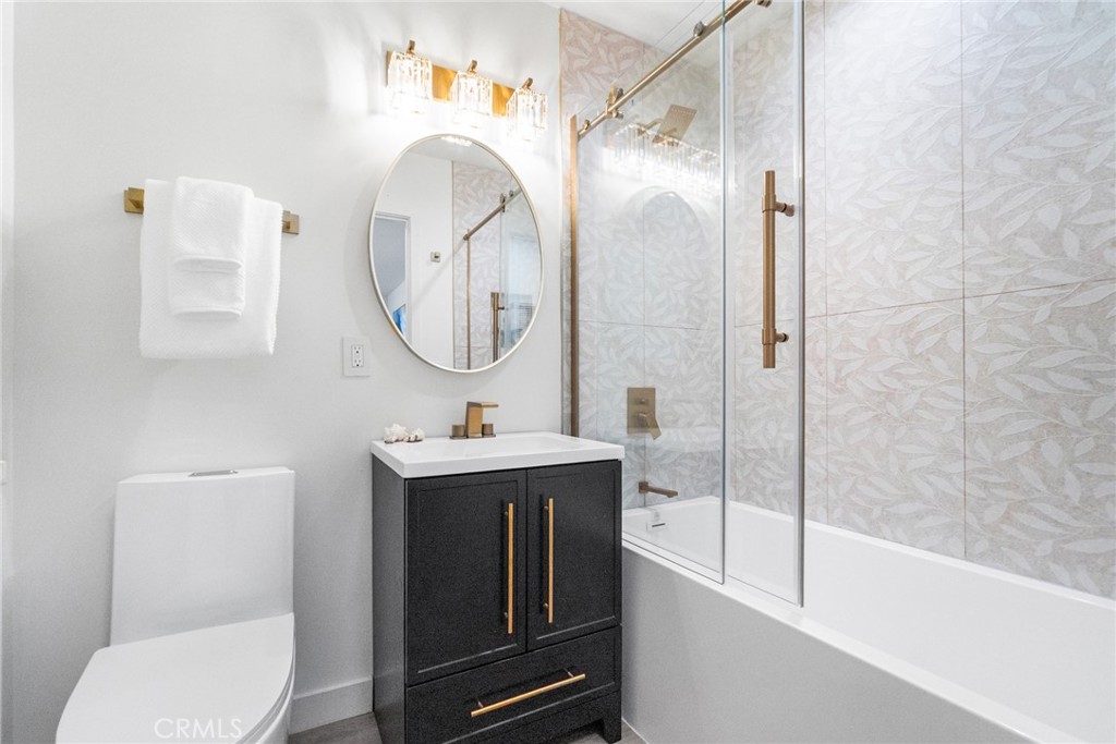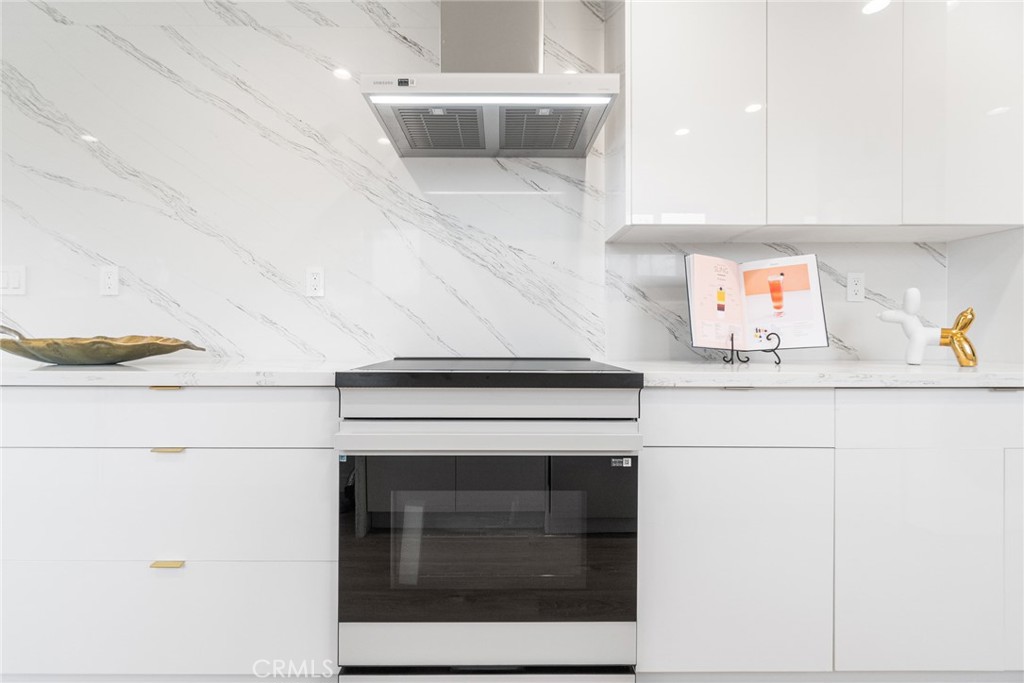 The beautifully remodeled kitchen features custom glossy lacquer cabinetry, striking quartz countertops with a clean waterfall detail, and a premium Samsung Bespoke white glass appliance package, complemented by thoughtfully curated finishes that blend style and functionality. Both bathrooms have been tastefully updated with modern tilework, contemporary fixtures, and cohesive designer touches. Each bedroom is generously sized, offering flexibility and comfort for a variety of living arrangements.