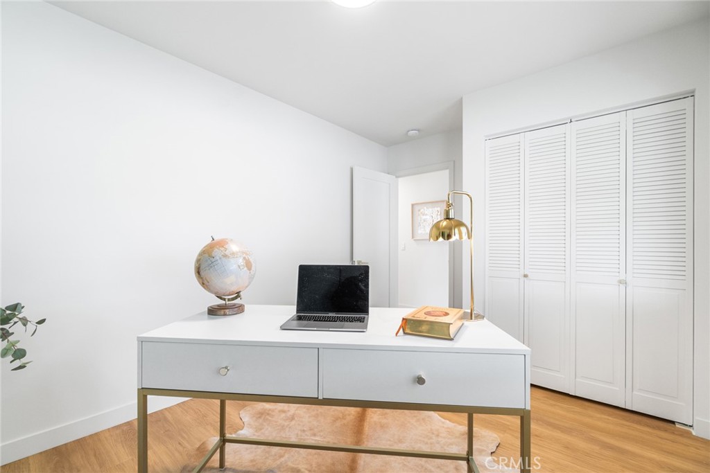 Significant upgrades include all-new electrical throughout, updated plumbing details, a finished garage equipped with an EV charger, and a Samsung washer and dryer for added convenience. The private backyard provides an ideal setting for outdoor dining, relaxation, or enjoying the Southern California sunshine. Its desirable corner-lot placement offers added space, presence, and a sense of openness that enhances the overall setting.