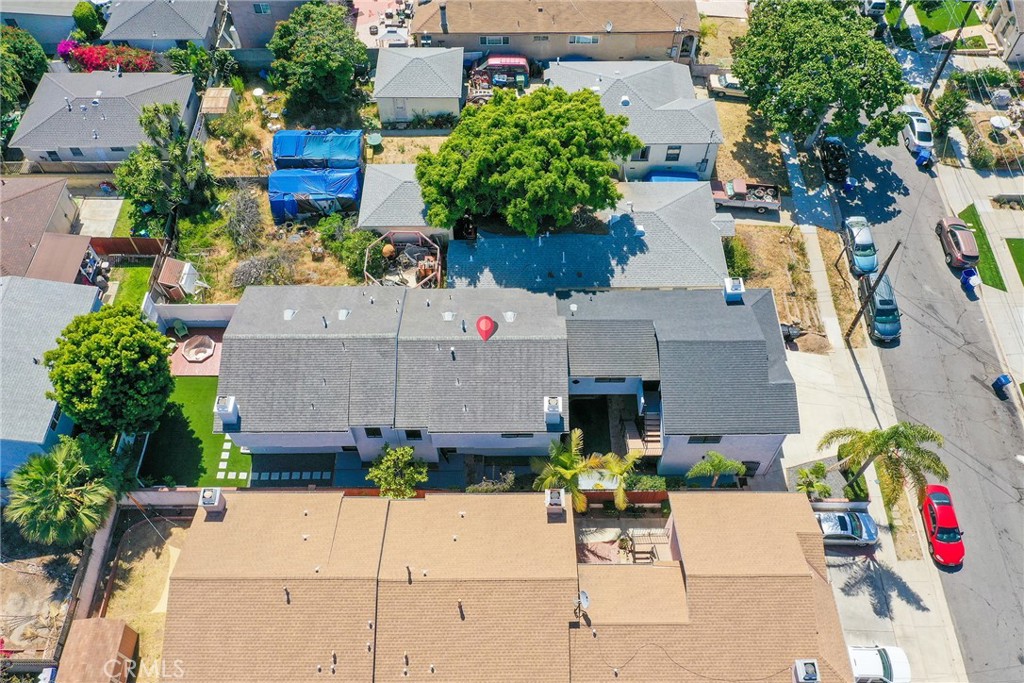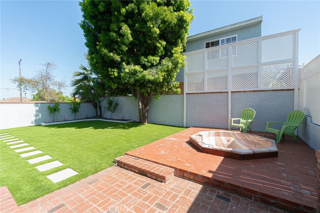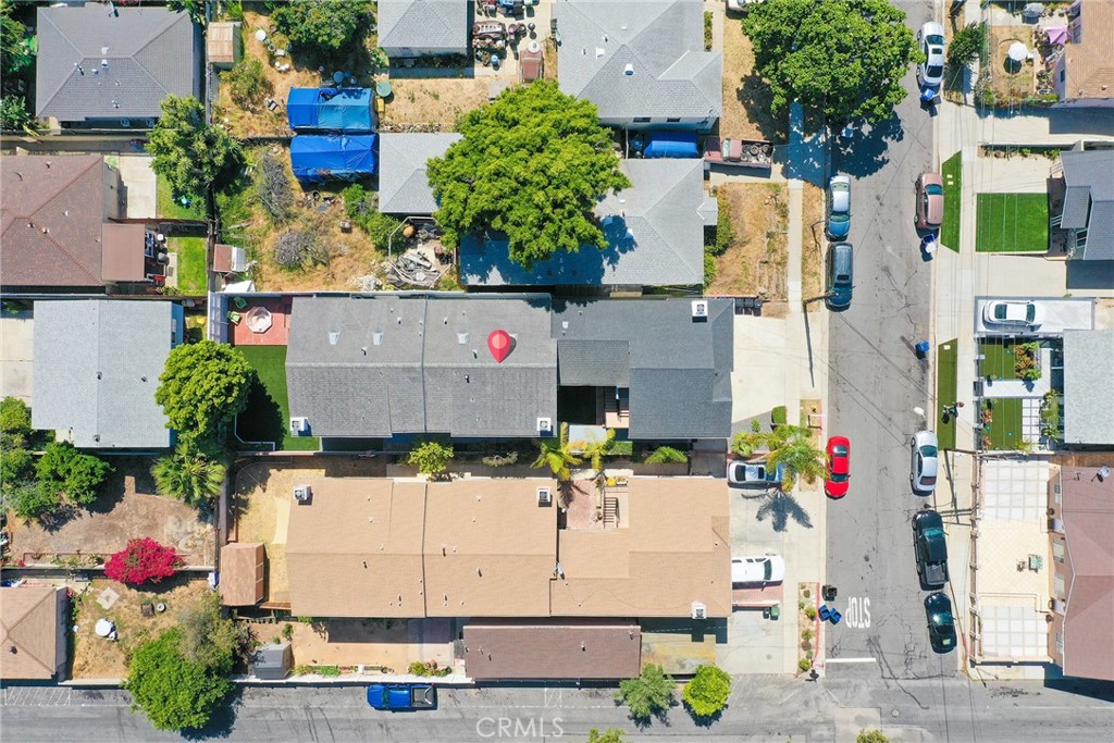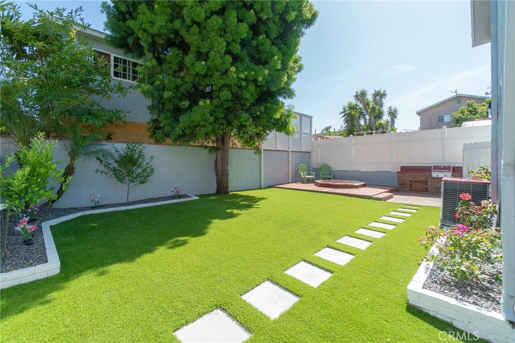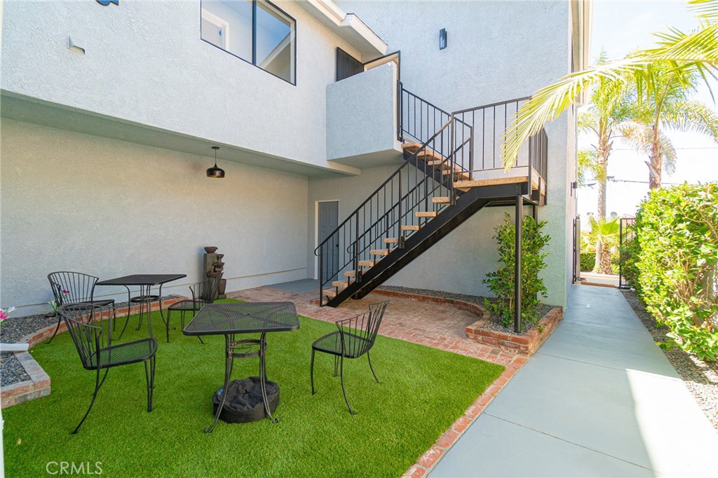 The rear unit mirrors the front unit's spacious design with another 1900sqft three bedrooms and 2.5 bathrooms. The ground floor features a stylish quartz floating island kitchen and bar, a cozy fireplace, a half-bath, and laundry facilities. Upstairs, three expansive bedrooms and two bathrooms provide ample living space. This unit also boasts central air conditioning, a side yard entry, and a sprawling 900 sq ft backyard adorned with red brick trim, modern pavers, blue pebbles, fruit trees, roses, an in-ground spa, built-in BBQ, privacy fencing, an additional large side yard for storage..