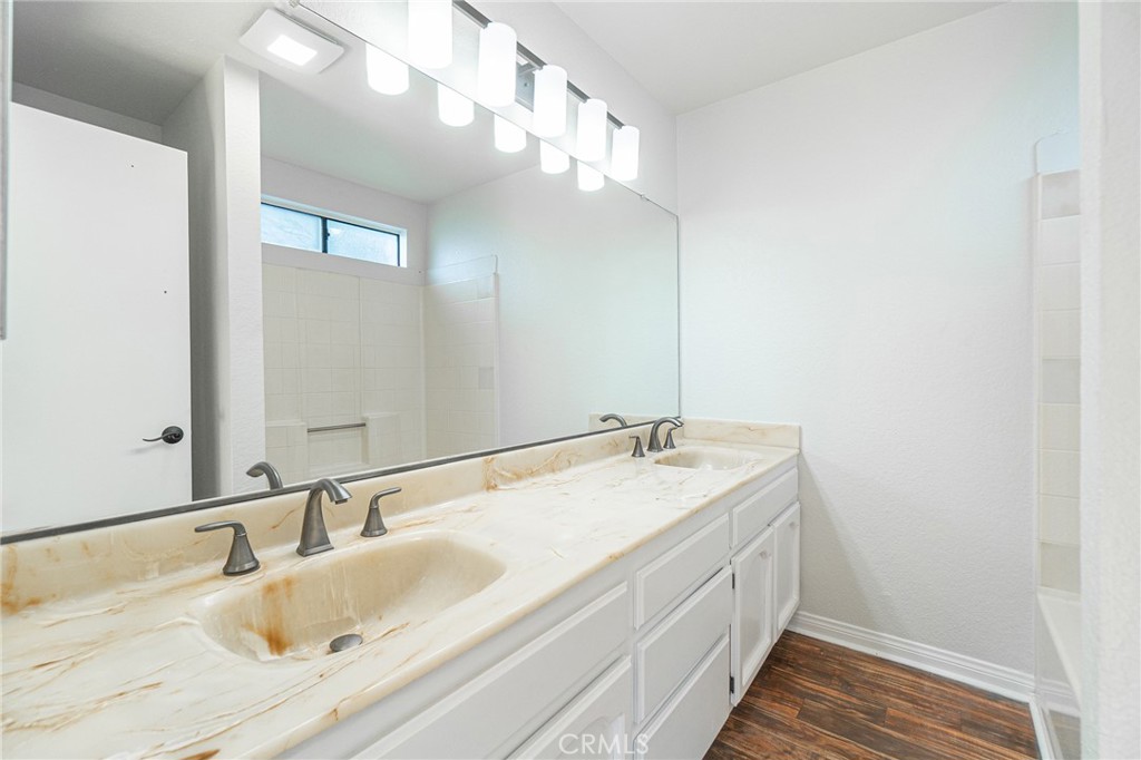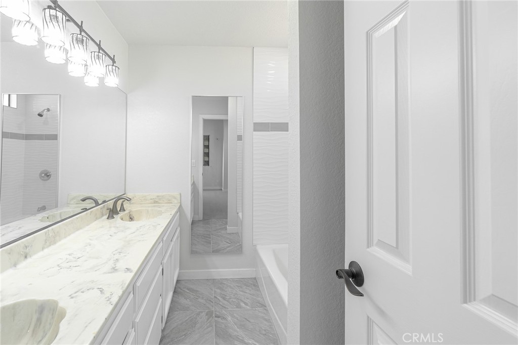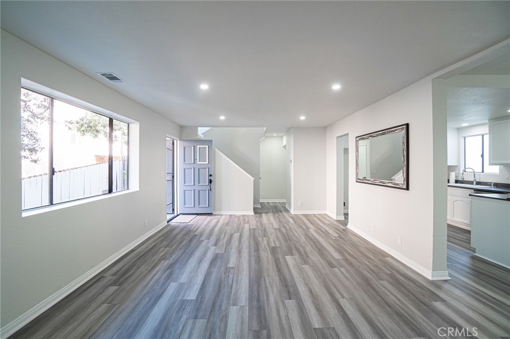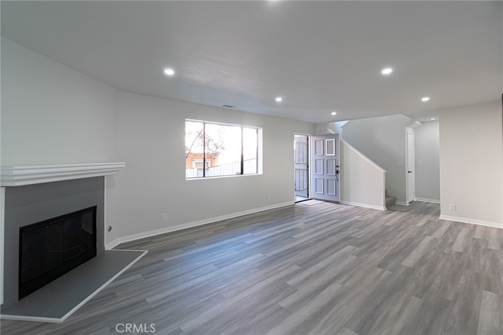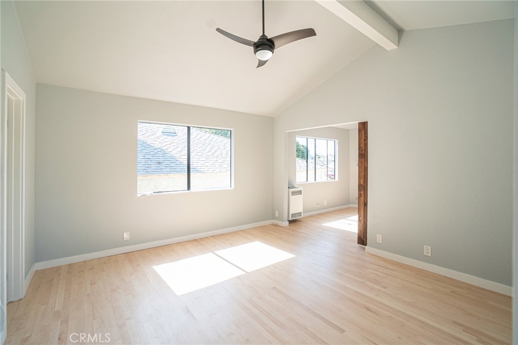 The rear unit mirrors the front unit's spacious design with another 1900sqft three bedrooms and 2.5 bathrooms. The ground floor features a stylish quartz floating island kitchen and bar, a cozy fireplace, a half-bath, and laundry facilities. Upstairs, three expansive bedrooms and two bathrooms provide ample living space. This unit also boasts central air conditioning, a side yard entry, and a sprawling 900 sq ft backyard adorned with red brick trim, modern pavers, blue pebbles, fruit trees, roses, an in-ground spa, built-in BBQ, privacy fencing, an additional large side yard for storage..